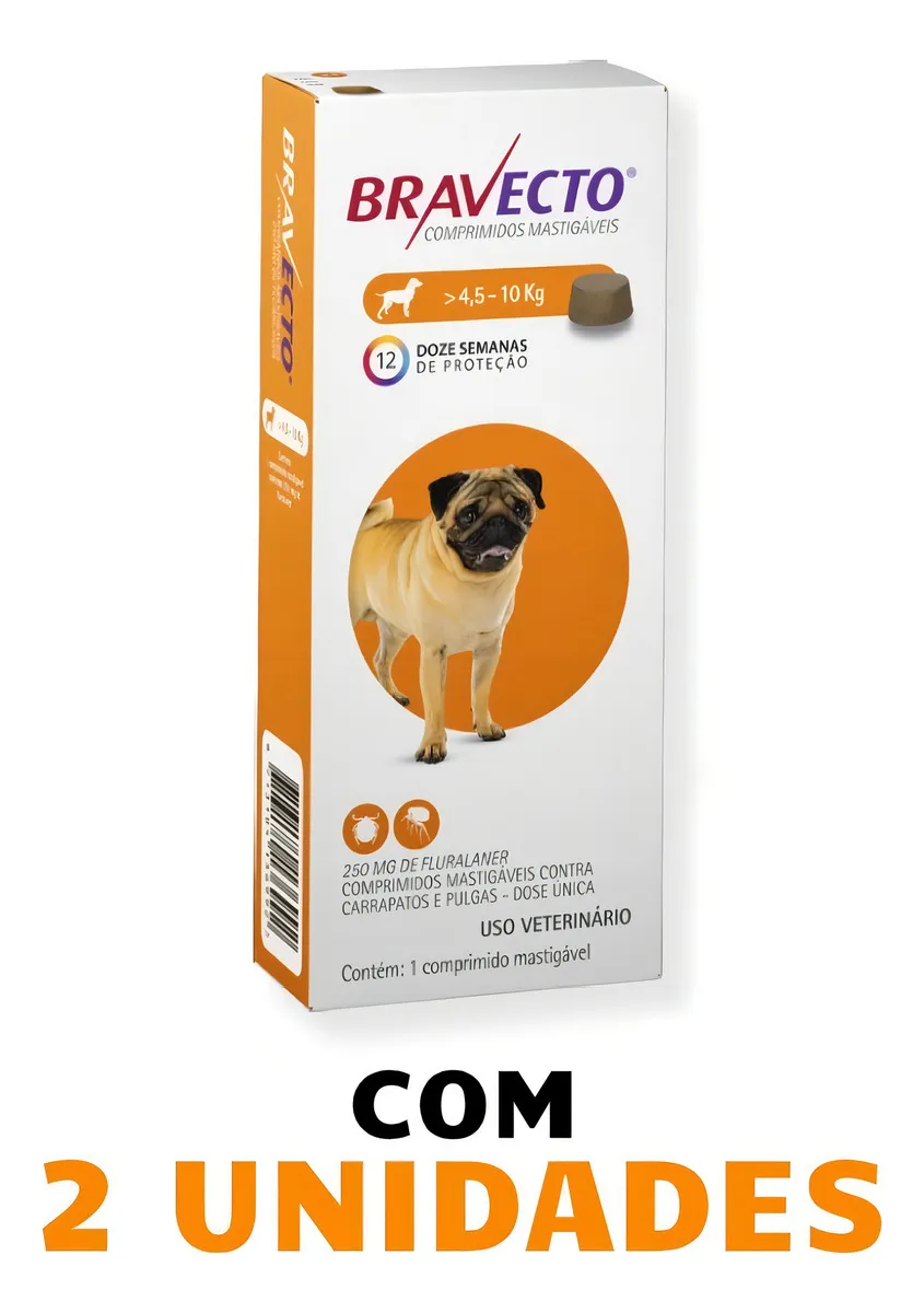 O Kit 2 Antipulgas e Carrapatos Bravecto MSD é a solução ideal para cães com peso entre 4,5 e 10 kg. Este produto inovador elimina rapidamente a infestação de pulgas e carrapatos, proporcionando uma proteção eficaz e prolongada por até 12 semanas. Os comprimidos mastigáveis são fáceis de administrar e garantem uma experiência agradável para o seu pet. Com uma composição que inclui 136,4 mg de fluralaner, o Bravecto é um tratamento seguro e confiável, desenvolvido pelo laboratório MSD. Além disso, a embalagem contém 2 comprimidos, permitindo um tratamento contínuo e eficaz. Mantenha seu cachorro livre de parasitas e saudável com Bravecto, a escolha certa para o bem-estar do seu animal de estimação.