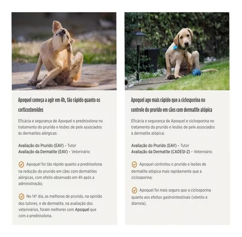 As alergias e irritações ocorrem por diversos motivos. Entretanto, o Apoquel para cachorros começa a agir em quatro horas e alivia os sintomas. Confira abaixo alguns benefícios do produto: