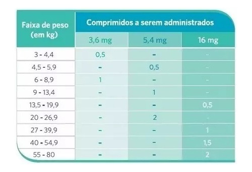– Disponível em comprimidos de 3,6 mg, 5,4 mg e 16 mg.