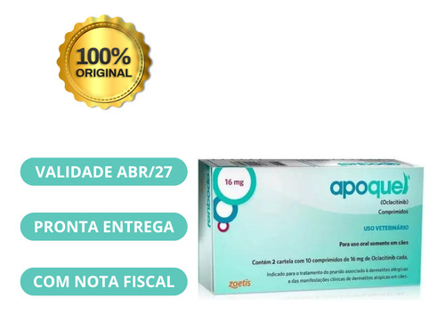 Apoquel 16 mg Dermatológico Dermatite para Cachorro Cão Cães Anti Coceira