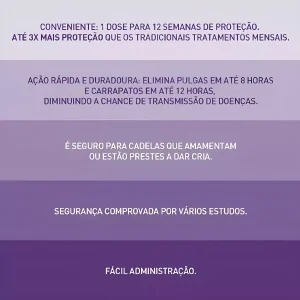 BRAVECTO 2 a 4,5KG Cachorro Cão Cães Antipulgas e Carrapatos PRODUTO 100% ORIGINAL, LACRADO E COM NOTA FISCAL INDICADO A PARTIR DA 8º SEMANA DE VIDA INDICAÇÕES: Bravecto™ é indicado para o tratamento de infestações por carrapatos e pulgas, em cães, proporcionando 12 semanas de proteção. Bravecto™ é um inseticida e acaricida, sistêmico com longa duração de ação, que promove eficácia imediata e persistente por 12 semanas contra carrapatos (formas adultas e jovens de Rhipicephalus sanguineus, Ixodes ricinus, Ixodes hexagonus, Ixodes scapularis, Ixodes holocyclus, Dermacentor reticulatus e Dermacentor variabilis) e pulgas (Ctenocephalides felis e Ctenocephalides canis). Carrapatos e pulgas devem estar aderidos ao cão, e já tendo iniciada a alimentação para serem expostos ao princípio ativo. Bravecto™ elimina carrapatos e pulgas em 12 e 8 horas. respectivamente. Além disso, controla eficazmente as populações de pulgas no ambiente, nas áreas às quais o cão tem acesso. Bravecto™ pode ser utilizado como parte de uma estratégia de tratamento para a dermatite alérgica à picada de pulgas. Bravecto Comprimido Para Cães até 4 kilos Um produto inovador e com benefícios muito superiores aos oferecidos pelos produtos tópicos e orais atualmente disponíveis. É muito seguro para os cães, inclusive para reprodutores, cadelas prenhas e em lactação. BRAVECTO™ é composto por Fluralaner, um princípio ativo pertencente a uma nova classe de antiparasitários, as Isoxazolinas 6. Fluralaner é o resultado final de um programa de otimização química que teve como objetivo principal desenvolver uma molécula com ação única, altamente seletiva, que tivesse como alvo o sistema nervoso dos parasitas. Muitos anos de pesquisa foram necessários para o desenvolvimento de uma molécula com características únicas e que atendesse às necessidades do exigente mercado de saúde animal. O Fluralaner é um potente inibidor do sistema nervoso dos artrópodes, pois atua de forma dupla ao bloquear os receptores GABA e Glutamato. Ao bloquear esses receptores, o Fluralaner interrompe a condução dos estímulos inibitórios, causando, nos parasitas, hiperexcitação, paralisia e morte. – Ação rápida e persistente. – 12 semanas de proteção – Eficaz, independente da frequência de banhos. – Administração oral, fácil e limpa. – Produto Original. – Cada embalagem possui Um Comprimido.