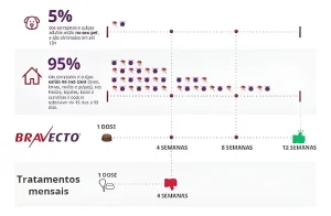 BRAVECTO 2 a 4,5KG Cachorro Cão Cães Antipulgas e Carrapatos PRODUTO 100% ORIGINAL, LACRADO E COM NOTA FISCAL INDICADO A PARTIR DA 8º SEMANA DE VIDA INDICAÇÕES: Bravecto™ é indicado para o tratamento de infestações por carrapatos e pulgas, em cães, proporcionando 12 semanas de proteção. Bravecto™ é um inseticida e acaricida, sistêmico com longa duração de ação, que promove eficácia imediata e persistente por 12 semanas contra carrapatos (formas adultas e jovens de Rhipicephalus sanguineus, Ixodes ricinus, Ixodes hexagonus, Ixodes scapularis, Ixodes holocyclus, Dermacentor reticulatus e Dermacentor variabilis) e pulgas (Ctenocephalides felis e Ctenocephalides canis). Carrapatos e pulgas devem estar aderidos ao cão, e já tendo iniciada a alimentação para serem expostos ao princípio ativo. Bravecto™ elimina carrapatos e pulgas em 12 e 8 horas. respectivamente. Além disso, controla eficazmente as populações de pulgas no ambiente, nas áreas às quais o cão tem acesso. Bravecto™ pode ser utilizado como parte de uma estratégia de tratamento para a dermatite alérgica à picada de pulgas. Bravecto Comprimido Para Cães até 4 kilos Um produto inovador e com benefícios muito superiores aos oferecidos pelos produtos tópicos e orais atualmente disponíveis. É muito seguro para os cães, inclusive para reprodutores, cadelas prenhas e em lactação. BRAVECTO™ é composto por Fluralaner, um princípio ativo pertencente a uma nova classe de antiparasitários, as Isoxazolinas 6. Fluralaner é o resultado final de um programa de otimização química que teve como objetivo principal desenvolver uma molécula com ação única, altamente seletiva, que tivesse como alvo o sistema nervoso dos parasitas. Muitos anos de pesquisa foram necessários para o desenvolvimento de uma molécula com características únicas e que atendesse às necessidades do exigente mercado de saúde animal. O Fluralaner é um potente inibidor do sistema nervoso dos artrópodes, pois atua de forma dupla ao bloquear os receptores GABA e Glutamato. Ao bloquear esses receptores, o Fluralaner interrompe a condução dos estímulos inibitórios, causando, nos parasitas, hiperexcitação, paralisia e morte. – Ação rápida e persistente. – 12 semanas de proteção – Eficaz, independente da frequência de banhos. – Administração oral, fácil e limpa. – Produto Original. – Cada embalagem possui Um Comprimido.