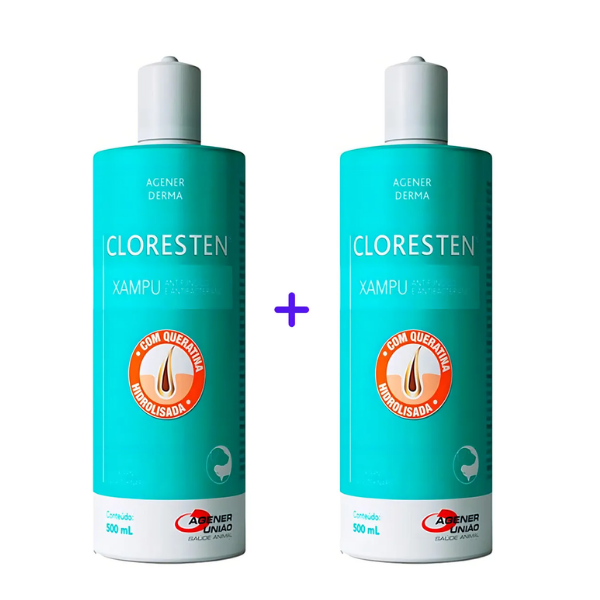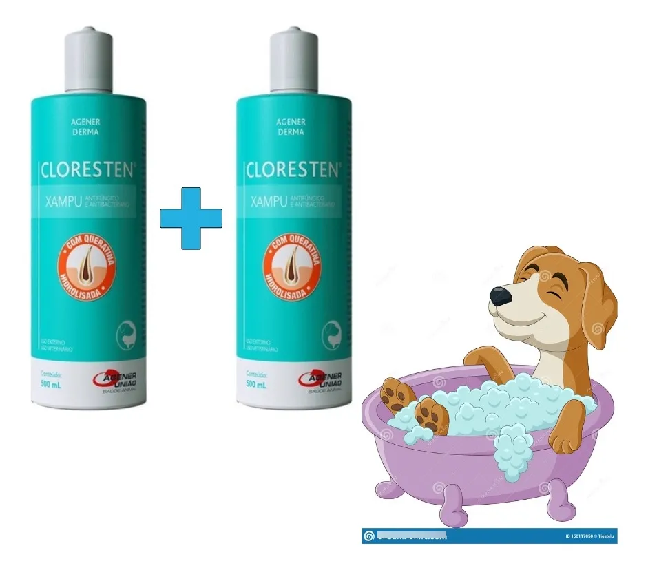 Combo 2 Cloresten Shampoo Antifúngico E Antibacteriano De 500ml Cães e Gatos